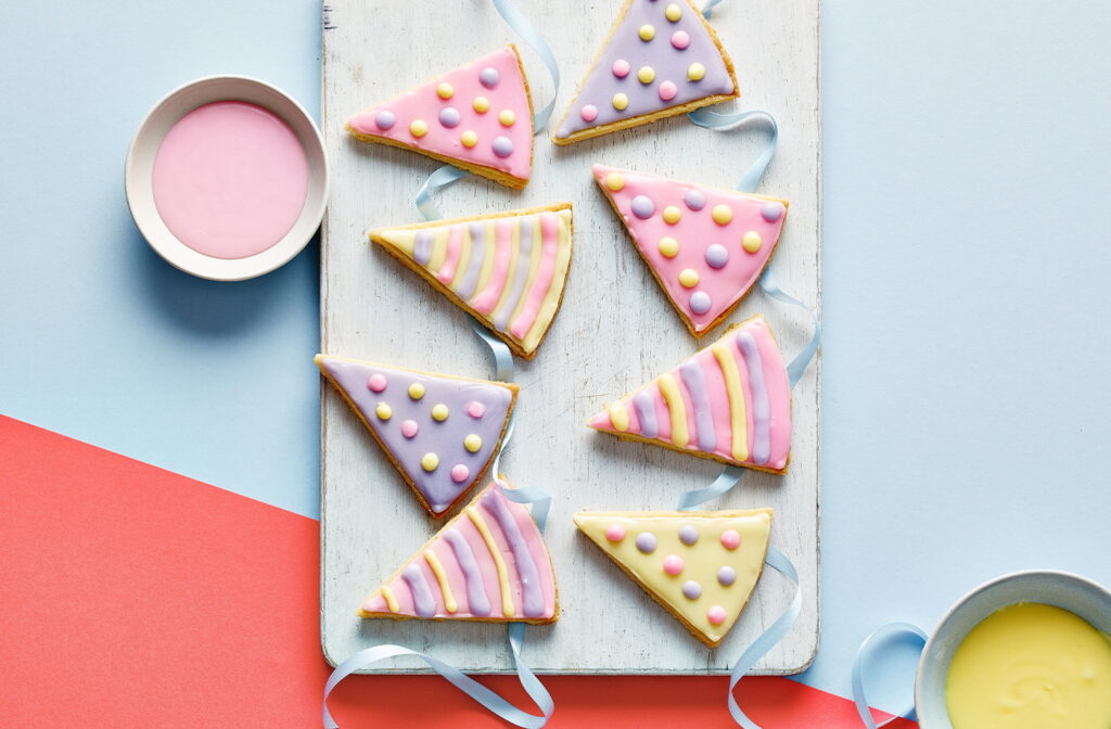 Bright and cheerful shortbread biscuits decorated with bunting icing really signals party season. If you want to hone your icing skills, this recipe is the one for you – decadent, delicate decorations top buttery shortbread for a sweet treat that will wow the crowd!